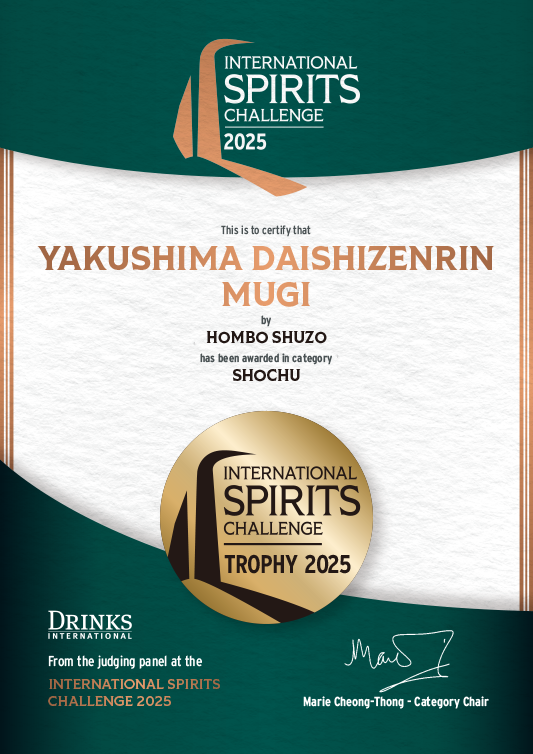 このたび、国際的なスピリッツ審査会として権威あるインターナショナル・スピリッツ・チャレンジ(ISC)において、本格焼酎「屋久島 大自然林 麦」が3年連続で部門最高賞「トロフィー(Trophy)」を受賞する快挙を成し遂げました。世界自然遺産の島・屋久島に根ざした焼酎蔵として、半世紀を超えて歩んできた「屋久島伝承蔵」の本格焼酎が、3年連続で名誉ある賞を頂けましたことは、大変喜ばしく誇りに思い、心より深く感謝申し上げます。これからも、地域の風土に根ざした酒造りに邁進し、ご期待に添えるよう精進してまいります。
